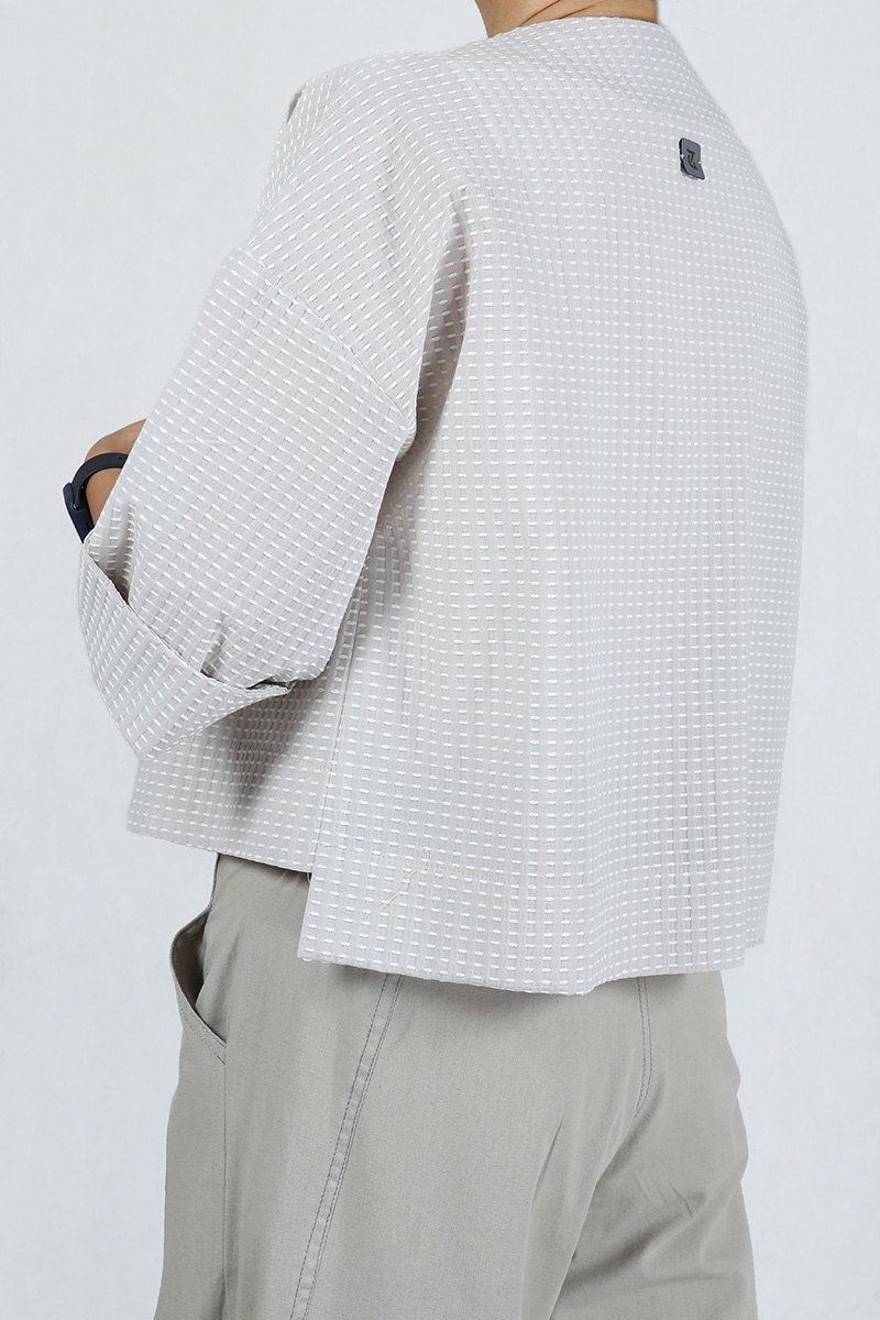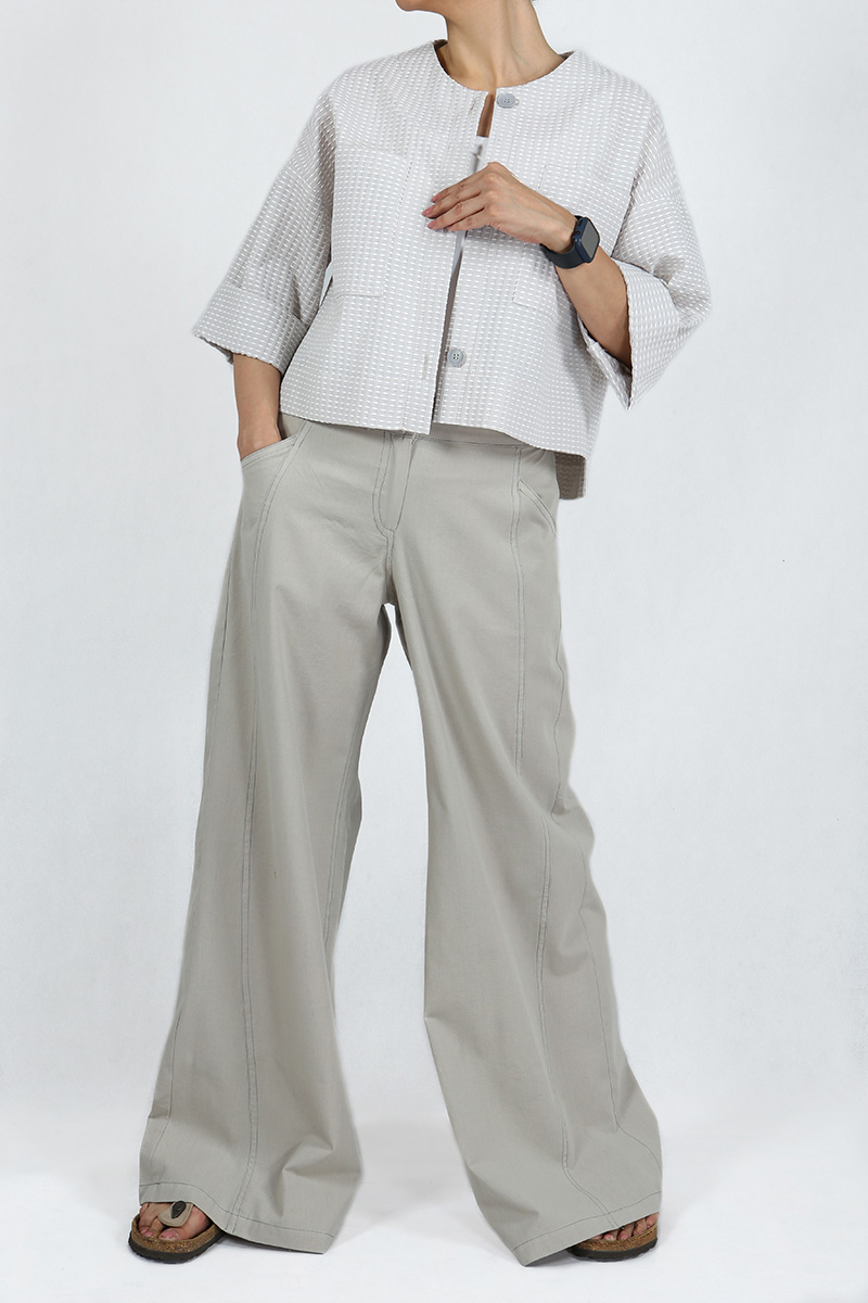 ۴۱۰۲ کت کراپ سه دکمه طوسی کوک دوزی