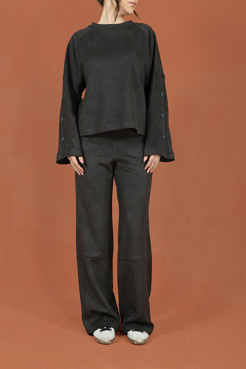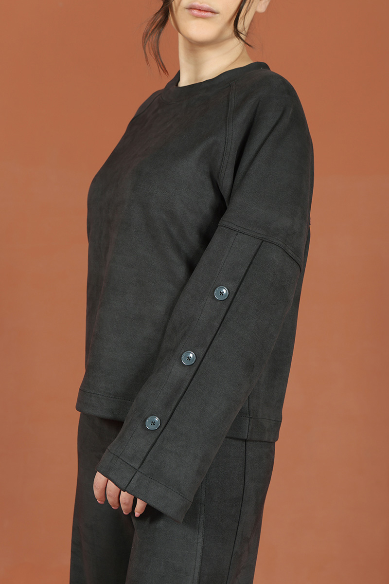 ۴۲۲۸ سوئت شرت آستین دکمه دار با برش سوییت زغالی
