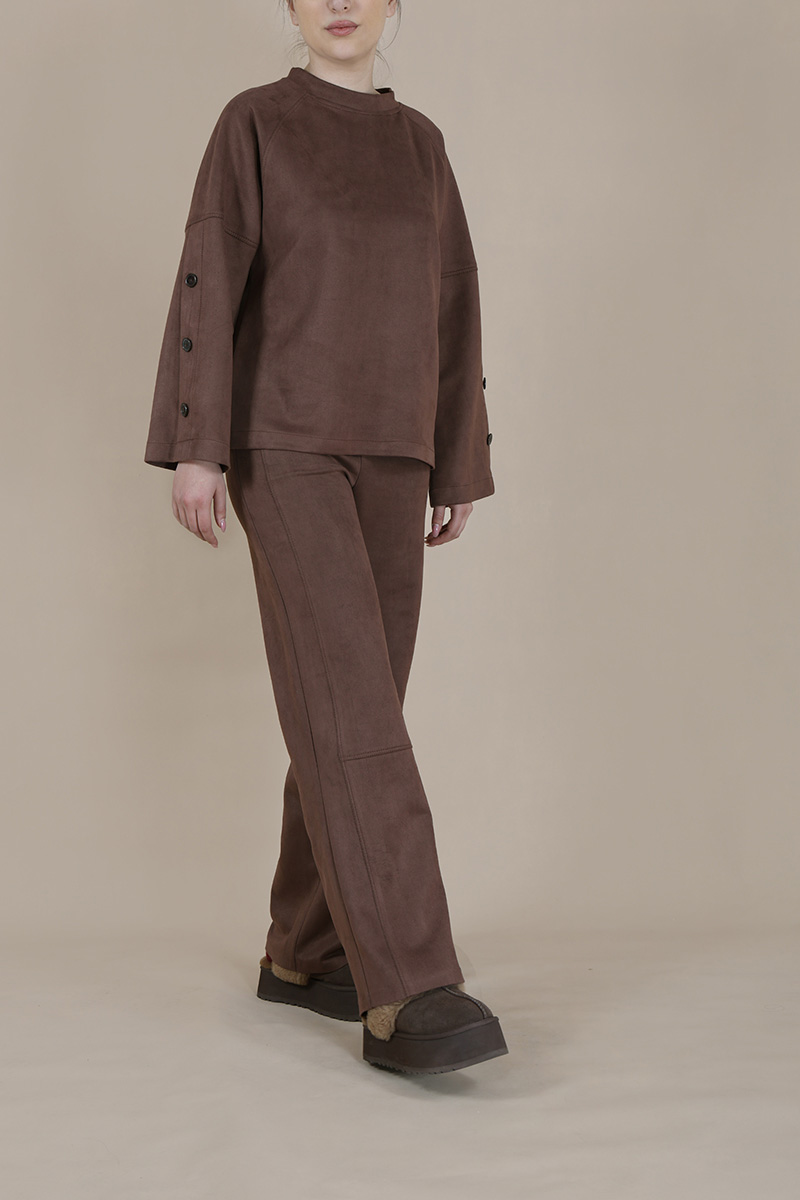 ۴۲۲۸ سوئت شرت آستین دکمه دار با برش سوییت قهوه ای